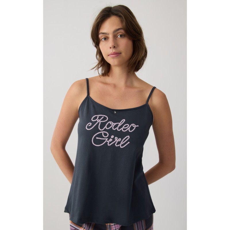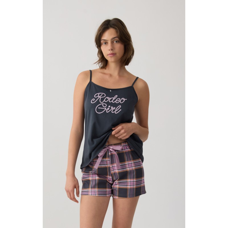 Minerva Rodeo Girl σετ πυτζάμας με λεπτές μπριτέλες στο τοπάκι και διακοσμητικό τύπωμα στο μπροστινό μέρος, καθώς και κοντό σορτς με λάστιχο στη μέση για άνετη και σταθερή εφαρμογή.Υφασμα εξαιρετικής ποιότητας από 100% βαμάκι που προσφέρει απαλή αίσθησηΠαραλήπτης :