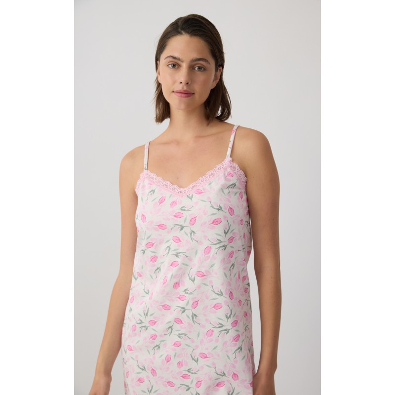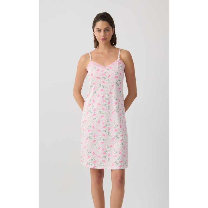 Minerva Tulips γυναικεία βαμβακερή νυχτικιά με λεπτές μπριτέλες και κομψό all over τύπωμα, διακριτική λεπτομέρεια δαντέλας στο ντεκολτέ που χαρίζει θηλυκό και καλοκαιρινό χαρακτήρα ενώ η άνετη γραμμή εξασφαλίζει ελευθερία κινήσεων.Παραλήπτης :