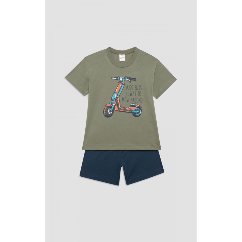 Παιδικό σετ πυζάμας για αγόρι Scooter Moves της Μινέρβα από 100% βαμβάκι εξαιρετικής ποιότητας, ιδανικό για άνετο και ξεκούραστο ύπνο. Το σετ αποτελείται από κοντομάνικο τοπ με τύπωμα μπροστά και άνετο σορτς,Παραλήπτης :