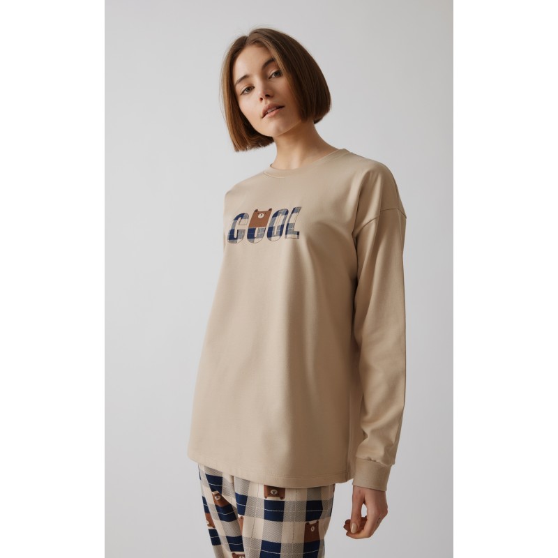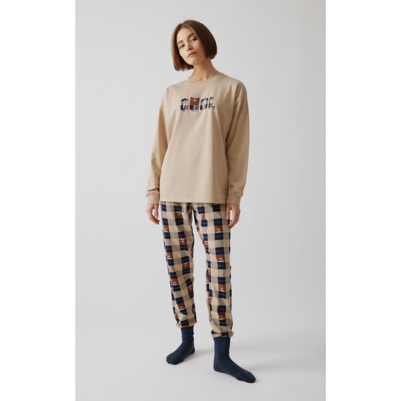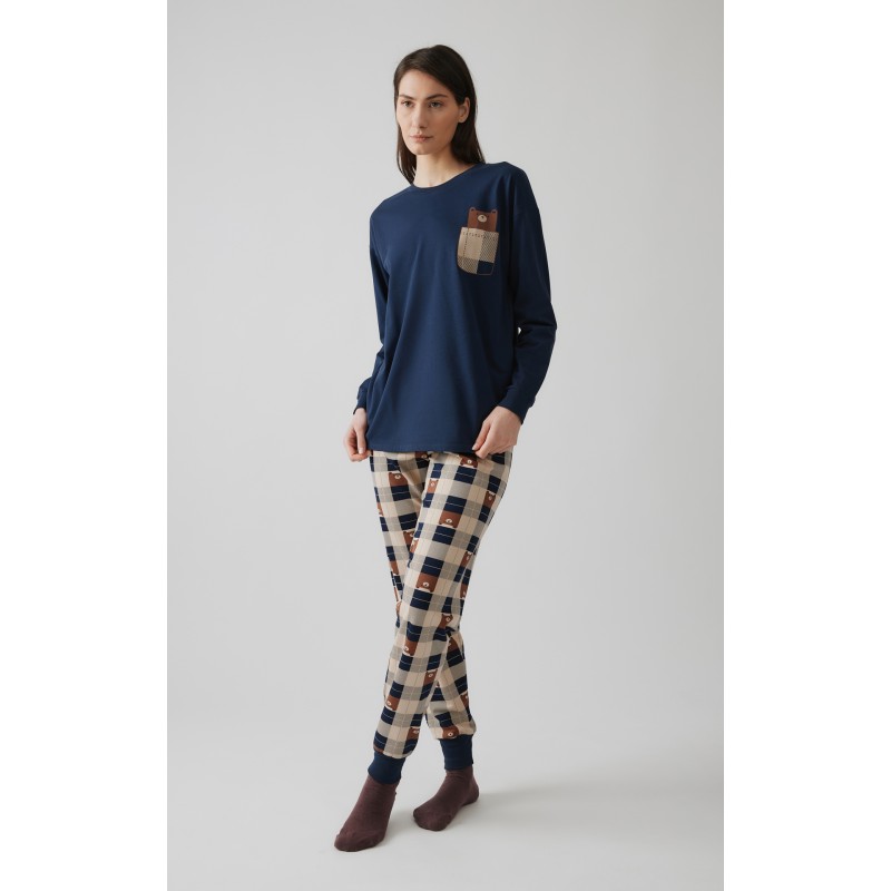 Χειμερινή πιζάμα Bear της Μινέρβα, αρκετά ζεστή, από 100% βαμβακερό φούτερ ύφασμα, υψηλής ποιότητας. Το σετ περιλαμβάνει μακρυμάνικη μπλούζα με τύπωμα στο στήθος και το παντελόνι, τυπωμένο καρώ, με μπάσκες στα τελειώματα.Παραλήπτης :