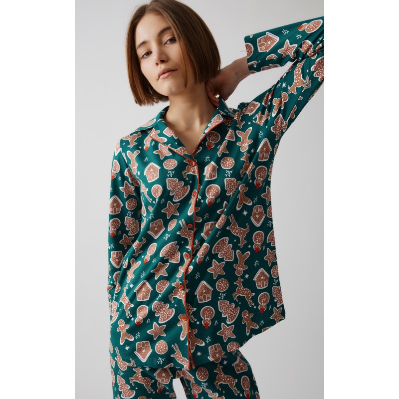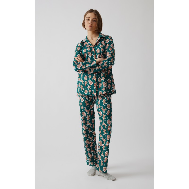 Xριστουγεννιάτικη πυζάμα X- Mas Biscuits της Μινέρβα από 100% βαμβακερό ύφασμα, τυπωμένο all over, υψηλής ποιότητας. Το σετ περιλαμβάνει μπλούζα μακρυμάνικη σε ίσια γραμμή με πέτο γιακά, κουμπιά, κοντράστ ρέλια και παντελόνι μακρύ ίσιο. Δημιουργήστε το αΠαραλήπτης :