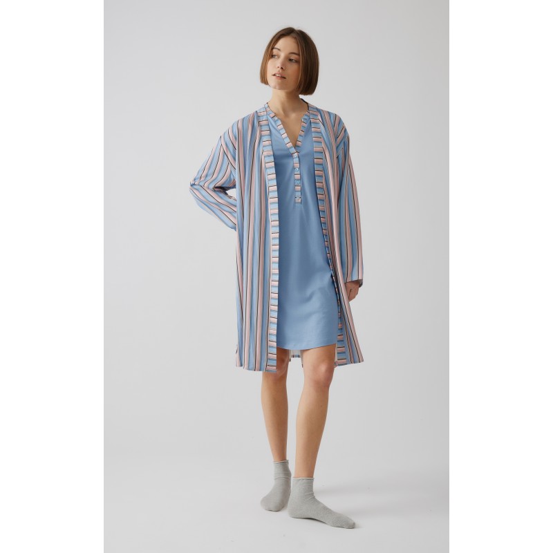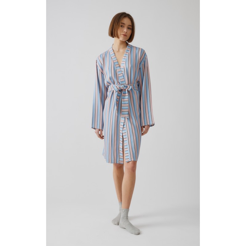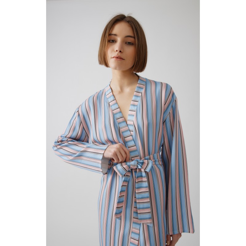 Ρόμπα ριγέ τυπωμένη της Μινέρβα από 100% viscose, υψηλής ποιότητας, με μήκος πάνω από το γόνατο. Συνδυάστε τη με την ίδια πυζάμα ή παντελόνι για ένα πιο ολοκληρωμένο και κομψό σύνολο.Παραλήπτης :