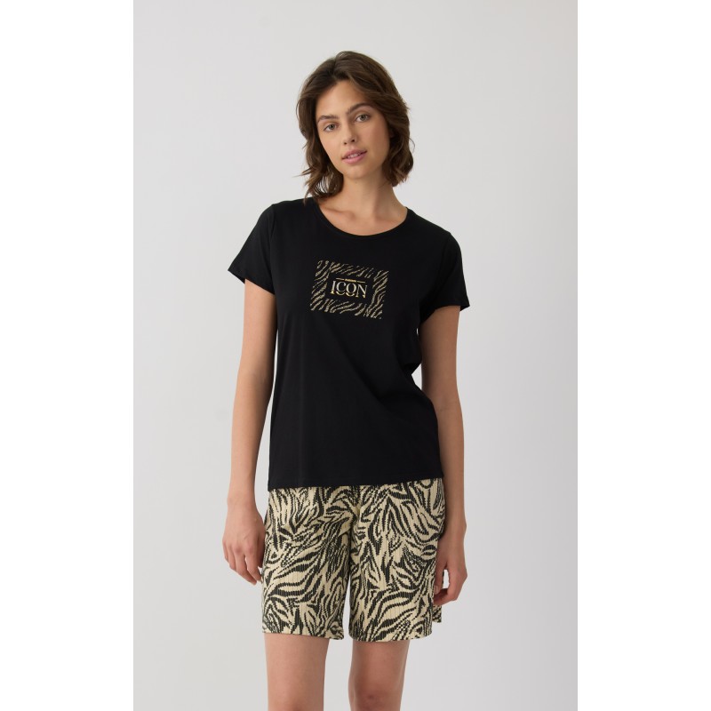 Minerva Leopard Γυναικεία Κοντομάνικη Κάπρι Πυτζάμα με V λαιμόκοψη