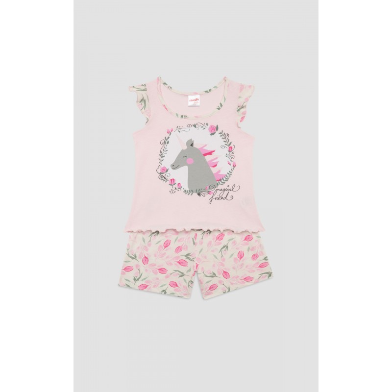 Παιδικό σετ πυζάμας για κορίτσι Magical Dream της Μινέρβα από 100% βαμβάκι εξαιρετικής ποιότητας, ιδανικό για άνετο και ξεκούραστο ύπνο. Το σετ αποτελείται από αμάνικο τοπ με τύπωμα μπροστά και σορτς με all-over τύπωμαRecipient :