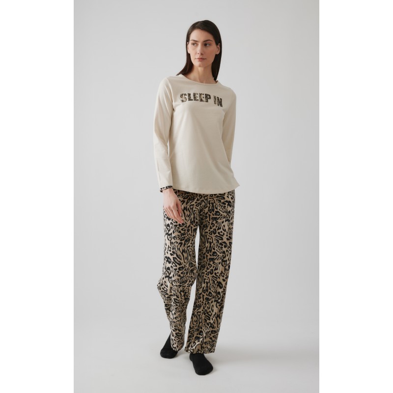 Χειμερινή πυζάμα της Μινέρβα από μίξη TENCEL™ Modal & βαμβάκι υψηλής ποιότητας που προσδίδει ένα εξαιρετικό αποτέλεσμα, ιδανικό για πιζάμες και άνετα ρούχα. Το σετ περιλαμβάνει μακρυμάνικη μπλούζα με τύπωμα στο στήθος και παντελόνι τυπωμένο all over μRecipient :